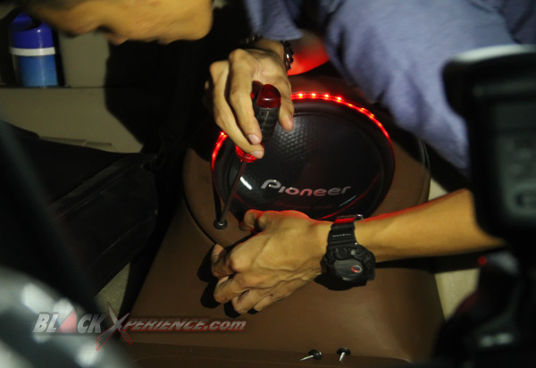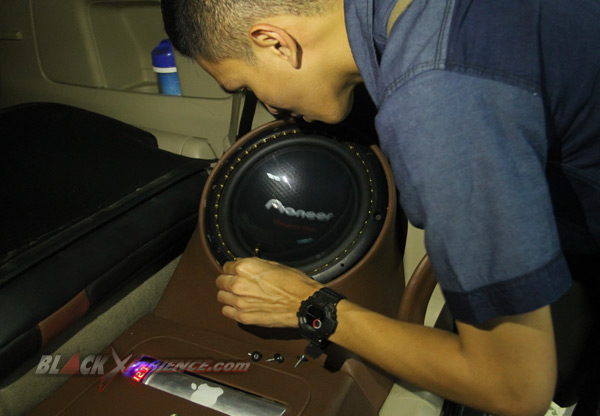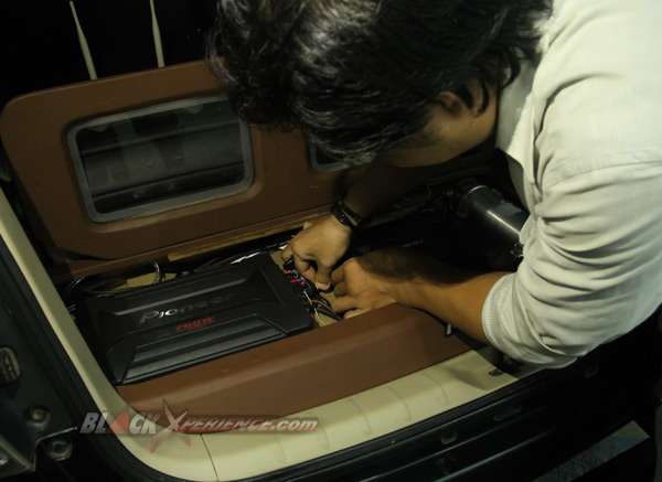 Rendy ikut turun tangan memasang perangkat audio mobilnya. Mulai dari memasang head unit Pioneer AVH-X8550BT serta beberapa panel-panel yang ada pada dashboard. Tak hanya itu, ia pun ikut memasang subwoofer Pioneer Champion Series 10 inci hingga meng-install sejumlah lampu LED sebagai kosmetik pada perangkat audio-nya. Beberapa orang crew Audio Beat juga memasang alias mengerjakan instalasi kabel audio system-nya.
