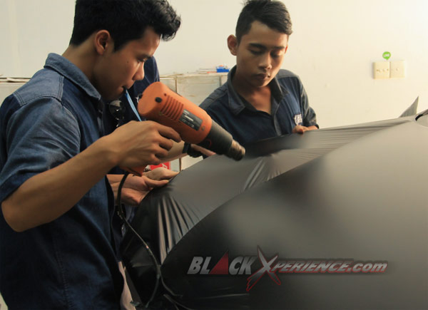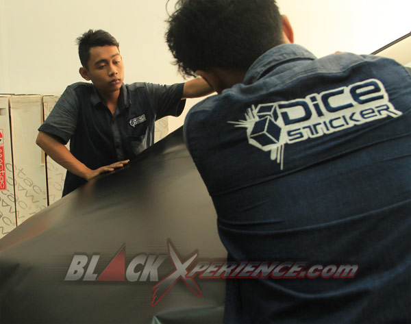 Teknik menempel kering tanpa bantuan air dipilih Rendy untuk membungkus seluruh eksterior mobil Toyota Innova-nya. Rendy memilih teknik tersebut dengan alasan lebih menghemat soal waktu selain daya reaktnya lebih tahan lama.