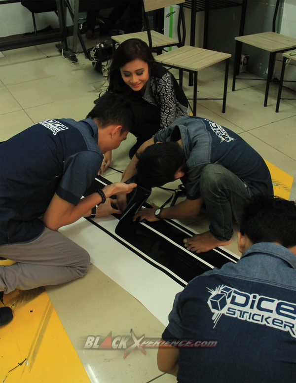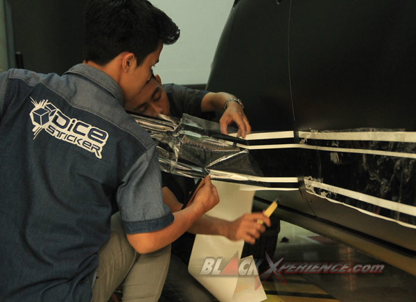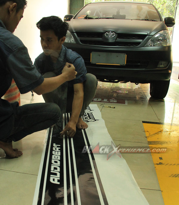 Dengan sigap seluruh anak buahnya menyelesaikan proses modifikasi Toyota Innova berkonsep daily use ini. Sementara itu, Rendy beserta desainer bengkelnya, menggarap sebuah desain cutting sticker untuk melengkapi striping di sisi kanan dan kiri mobilnya.