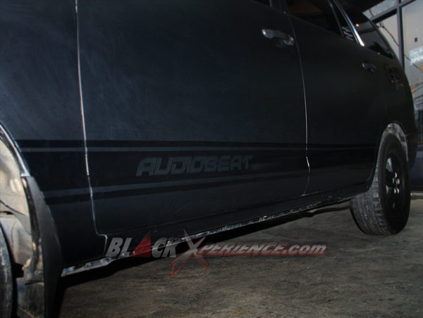 Proses modifikasi Toyota Innova daily use garapan Rendy Dice Sticker terus beerlanjut. Kini, proses modifikasi menyentuh bagian eksterior. Setelah modifikasi interior, audio system, dan peremajaan tampilan menjadi fokus utama Rendy untuk menggarap sektor eksteriornya. Rendy membungkus seluruh bagian eksterior dengan sticker berwarna hitam doff. Sebagai penyempurna sekaligus branding dari pada bengkel audio rekanannya, Rendy membuat cutting sticker Audio Beat pada sisi bawah eksterior kanan dan kirinya.